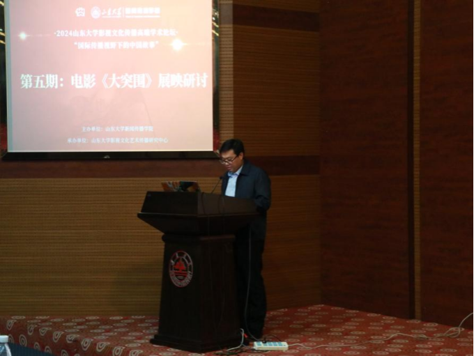为赓续红色血脉,厚植爱国情怀,凝聚奋进力量,推进学院主题教育走深走实,提升学院一院一品文化建设质量,11月1日下午,det365登录网站主页在知新楼C座思源报告厅开展“光影里的旗帜”主题团课暨红色影片《大突围》展映研讨活动。本次观影活动由det365登录网站主页主办、det365登录网站主页影视文化艺术传播研究中心承办。山东省委宣传部电影处处长张萍萍,中共济南市委宣传部电影处处长张宏,中共济南市委宣传部电影处副处长刘海鹏等领导莅临此次活动。本次活动由det365登录网站主页副院长(主持行政工作)、det365登录网站主页影视文化艺术传播研究中心主任倪万主持,det365登录网站主页党委宣传部副部长刘金帅致欢迎词。
