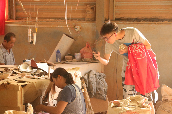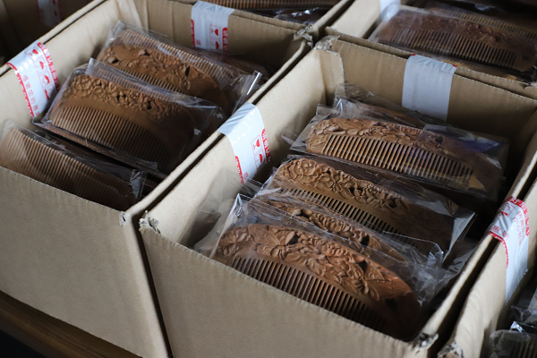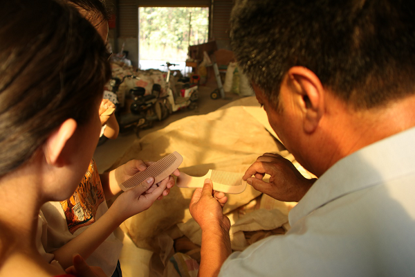 参访结束后,书记带领调研团成员到木梳工厂实地参观木梳的生产加工过程,以及一线工人的生产情况。调研团在木梳工厂近距离观察木梳生产加工的切割、打磨、抛光、纹饰、刻印等工序,切身了解到木梳生产制造的每一项环节。同时,调研团成员还对工人进行了简短的采访。