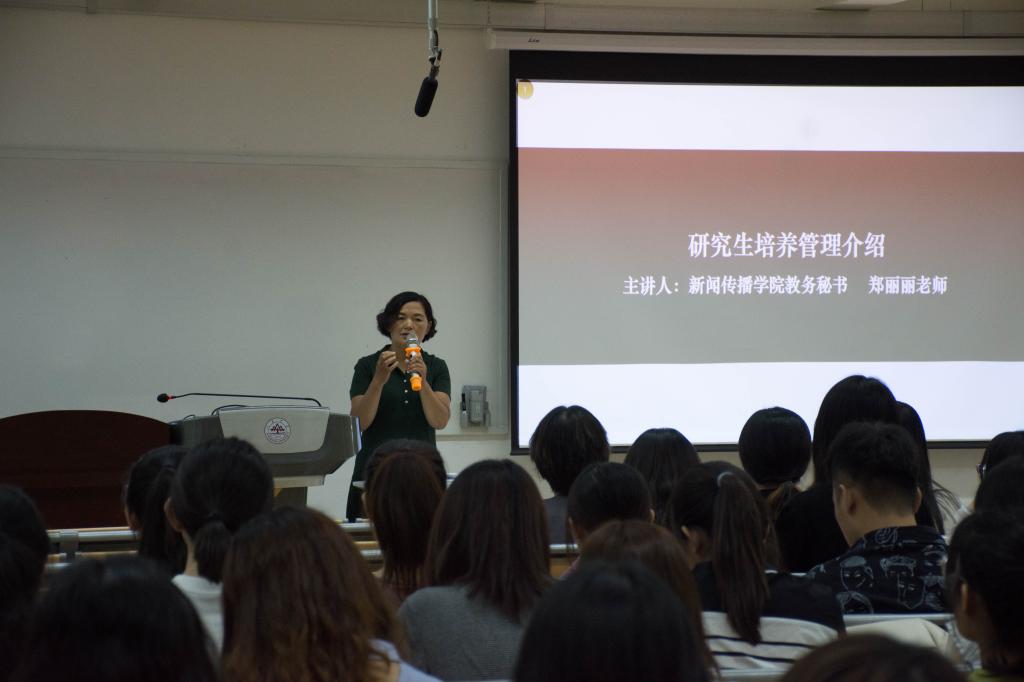 第二部分为新生入学教育培训。倪万首先对det365登录网站主页新闻传播学学院进行了具体的介绍,而后针对研究生学术规范、教学安排与要求等进行了具体阐述;王丽君针对新生的安全与心理教育、在校管理等方面进行了入学教育;郑丽丽主要介绍了研究生的相关学术要求和评奖评优的要求,并针对此前各位老师所讲内容进行了具体的答疑。
