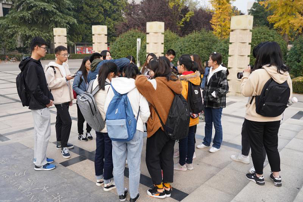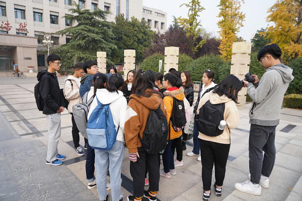 同学们积极寻找着最佳拍摄角度,并对构图进行不断地调整。有的同学拍出了好看的照片,有的同学录制了满意的视频,有的同学还将自己拍的照片拷贝出来带走。广场旁的两排银杏树、经过的行人和目之所及的建筑物都成为大家的拍摄对象。同学们积极尝试,影协培训人员们及时帮助,双方在互动中共同进步。