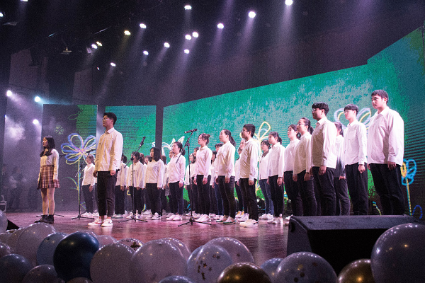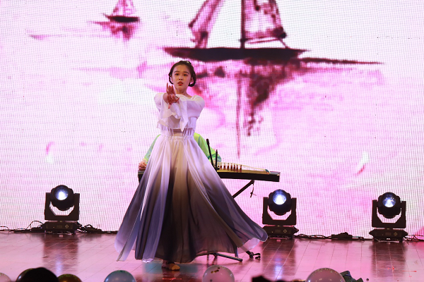 晚会节目可谓是精彩不断,高潮迭起。歌曲类节目中,流行歌曲串烧《大鱼》《勇气》《逝去的歌》各具特色,引人入胜;陈乾和陈怡初的吉他弹唱《喜帖街》、《茶底世界》独具特色,琴声清脆、歌词朴素,台下同学纷纷挥舞着荧光棒,跟着合唱起来。则在校园十大歌手大赛中脱颖而出的王一曌和杨光正,也倾情献唱了《无羁》和《perfect》,凭借着扎实的演唱功底、稳健的台风,带来了一场绝妙的听觉享受。热爱民族音乐的同学们也圆了自己的“古风”梦,《知否知否》舞台上衣袂飘飘,混搭了古筝、二胡、琵琶的乐声,再加上动人的演唱,掀起全场第一个小高潮,随之而来的京剧《定军山》的表演,亦让观众们眼前一亮。