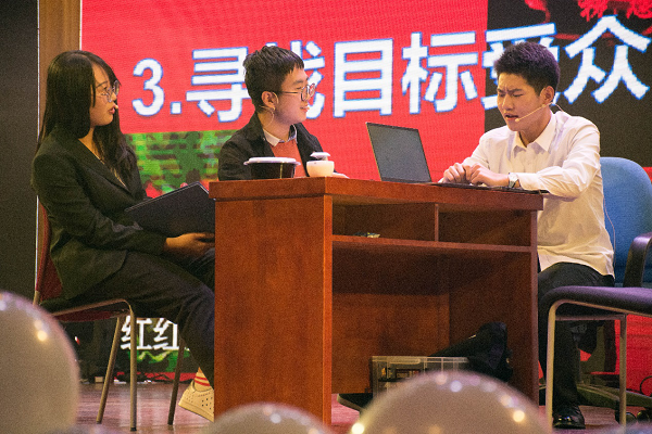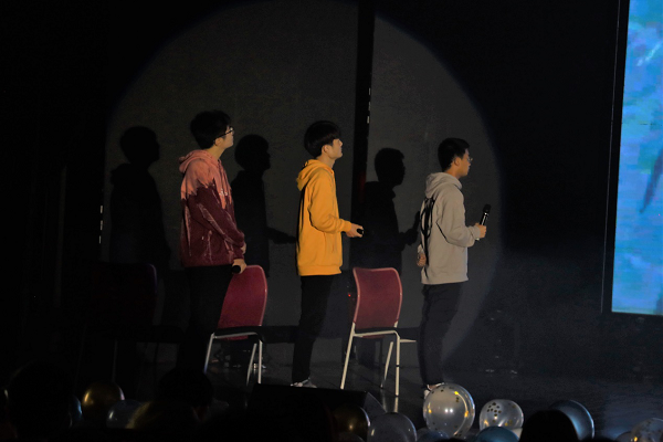 由18、19级同学和辅导员杨璐合力带来的节目《新版声临其境》,创意十足,形式新颖,感情十足的配音和惟妙惟肖的肢体动作仿佛人物在屏幕上走了出来,真的是让大家“身临其境”,眼前一亮。另一个节目《七位公民》则采用话剧的形式,结合新闻传播专业的特点,讲述了面对复杂现实事件,新闻人敢于发出不一样的声音,最终坚持新闻理想的故事,引起大家对舆论对新闻的深深思考,更加深刻理解做新闻理性、独立、批判思考的重要性。