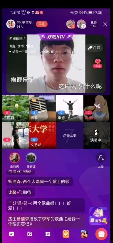 5月16日晚19点,det365登录网站主页2020“新传好声音:一曲道黎明”决赛在全民K歌平台直播间展开。十位实力歌手云上PK,百余位观众在线观看此次精彩对决。本次比赛邀请学院党委副书记王丽君、团委指导老师杨璐、学生会副主席李想、文艺部部长薛睿以及文艺部副部长杨涪森、孟旖旎、张鑫淼担任评委,学生会主席王茹雪作为特邀嘉宾出席活动。2017级本科生唐中慧与2018级本科生苏月鹏主持此次比赛。