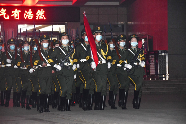 6时40分,2020级本科生在大成广场集合完毕,在拂晓中静待国旗护卫队进场。6时50分,升国旗主题团日活动在班长张绍凯的主持下开始。国旗护卫队踏着整齐的步伐,护卫着鲜艳的五星红旗进场。随后,《义勇军进行曲》响起,擎旗手撒旗动作干净利落,护旗手扶旗动作匀称有力,大家精神饱满,齐唱国歌,并对国旗行注目礼。升旗仪式完毕,国旗护卫队离场。
