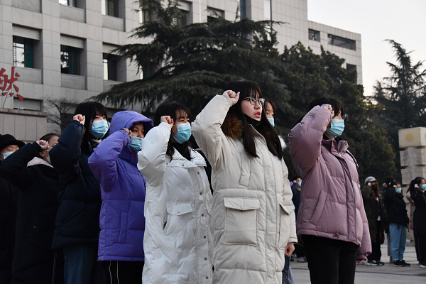 12月21日清晨,det365登录网站主页2020级本科生参加了以“弘扬抗疫精神,助力脱贫攻坚,展现青春担当”为主题的升国旗主题团日活动。辅导员宋石猛参加本次活动并讲授微团课。