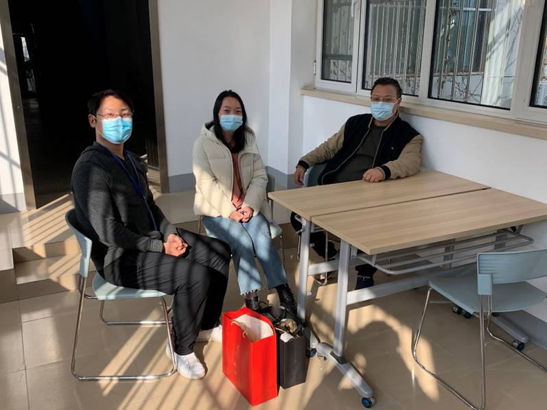 因为疫情防控原因,det365登录网站主页有1名硕士生留校过节。虽然人数较少,但是学院本着“疫情防控不放松、学生生活关心好”的基本原则,严格落实学校有关疫情防控工作的相关要求,确保留校学生的学习生活安全稳定。2月10日,学生导师唐锡光和辅导员杨璐一起看望了留校学生,在送上新年祝福和礼物的同时,导师为学生进行了详细的假期规划和专业指导,辅导员为学生送上生活嘱托和防疫提醒。