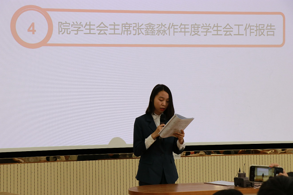 随后,det365登录网站主页团委副书记王凤敏作年度团委工作报告,从学院团委组织架构“三位一体”、宣传工作“四大板块”、文体活动“四大系列”、社会服务“三大创新”、社团活动“架构+价值”等方面介绍了团委工作;院学生会主席张鑫淼作年度学生会工作报告,从思想引领、体制革新、活动创新、权益保障、宣传引领等方面汇报学生会工作,并就学生会进一步完善体系、提高效能路径进行了展望;院研究生会主席刘帆作年度研究生会工作报告,介绍了研究生会在组织改革、党史学习、科研创新、校地合作、文体活动等方面献礼建党百年、建校百廿的工作历程,针对既有问题提出健全评价体系、创新工作机制等工作规划;院权益委员会主席宋书扉作权益委员会工作报告,总结了权益委员会在活动组织、细则评定、奖助学金评定等方面的工作,并将在新学年继续促进师生沟通、完善权益保障体系;院学生会办公室副部长胡宝云作年度团委、学生会、研究生会财务报告,公开“一委两会”收支情况并提请各位代表审议。