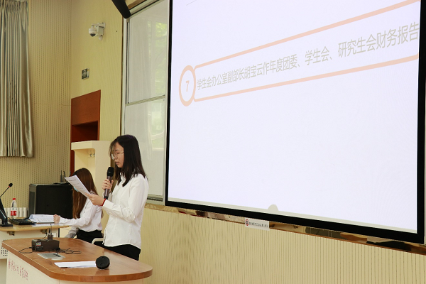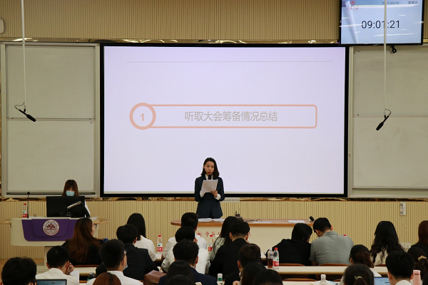 院权益委员会主席宋书扉作第三次学生代表大会、第三次研究生代表大会提案工作报告,就增加学院教学设施、完善本科生导师机制、增加创新团队专业性辅导、提供高质量实习机会等新旧提案进行了反馈,针对相关问题提出了相应的解决措施,并鼓励代表与同学们继续对学院发展提出意见建议。最后,大会审议通过新一届学生会主席团、研究生会主席团成员。