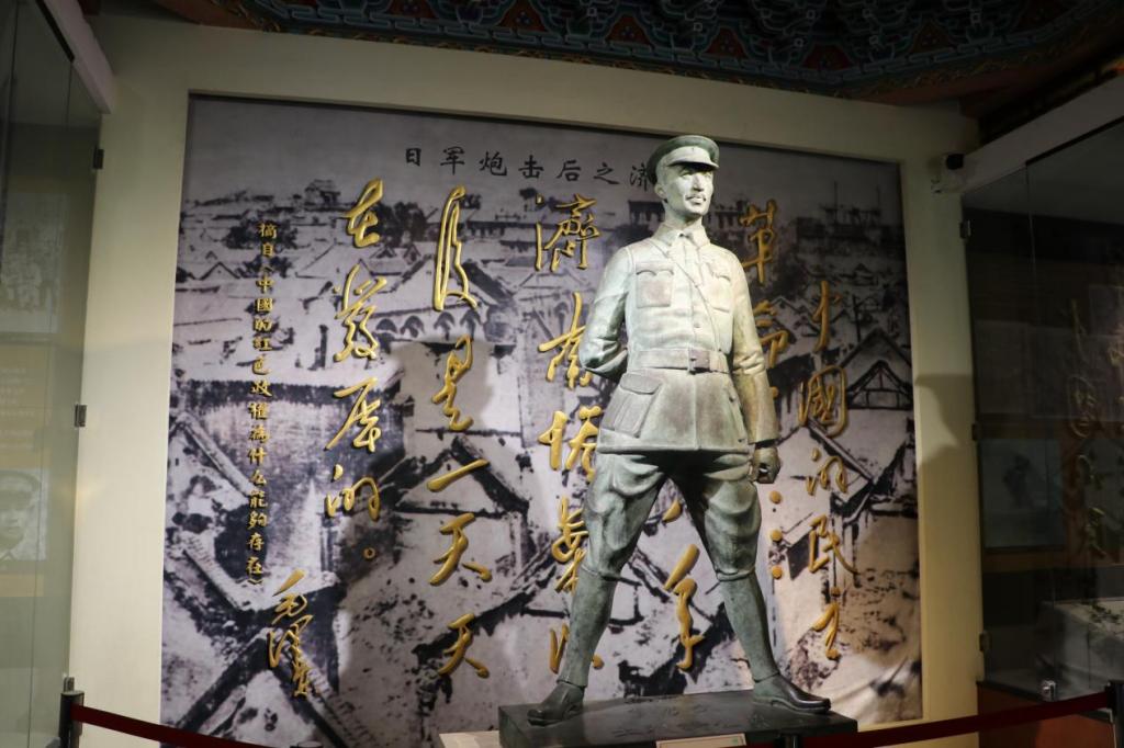 走进纪念堂,正对门口的就是蔡公时先生全身铜像,铜像后展示了日军炮击后的济南,上面镶嵌着毛泽东在《中国红色政权为什么能够存在》一文中有关济南惨案的片段,纪念堂两侧陈列了大量史料,分为“风雨如磐”、“古城喋血”、“同仇敌忾”等几大部分。我们怀着沉重的心情仔细观看了每一份珍贵的史料,每一份用心的复原图,真真切切了解到侵略者的残忍行径,感受到近代中华民族所遭受的屈辱与痛苦。