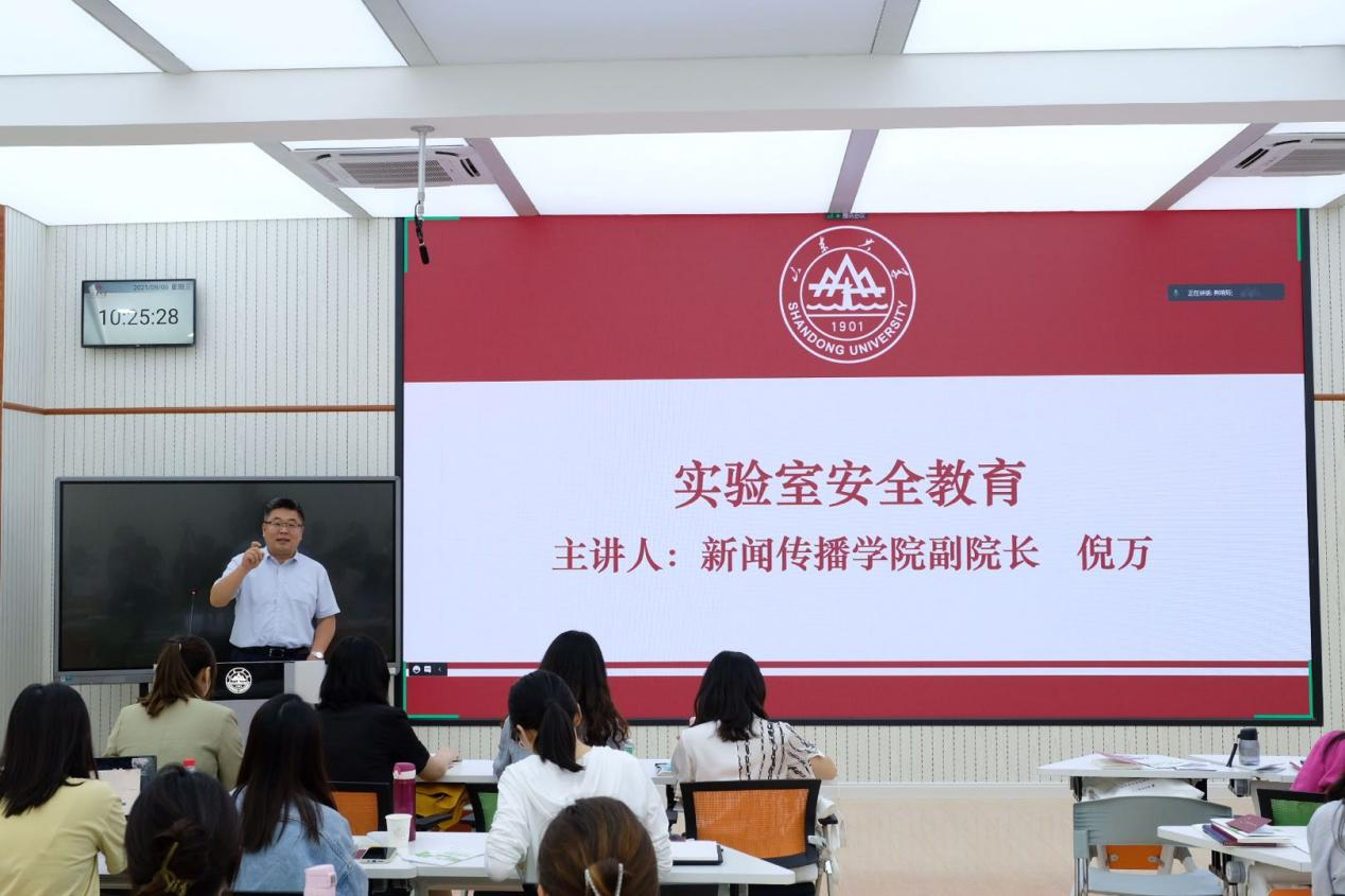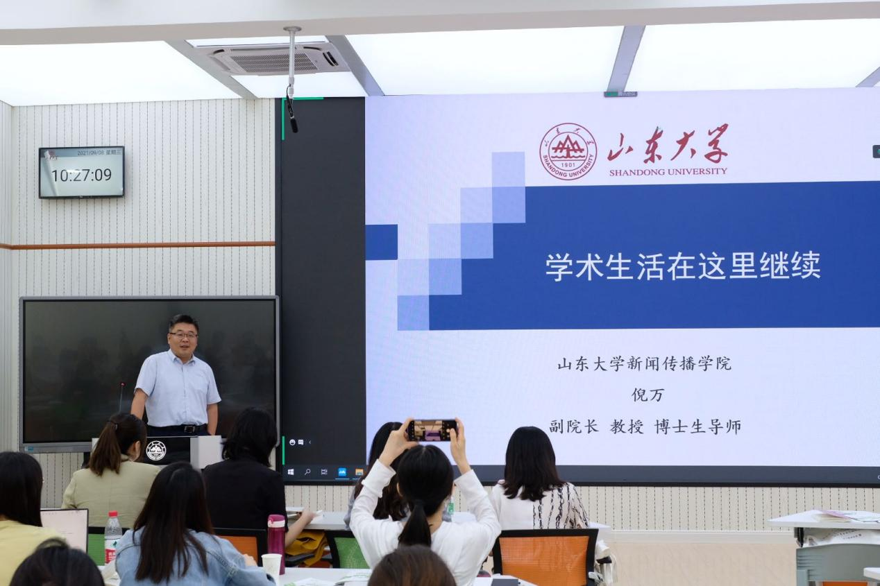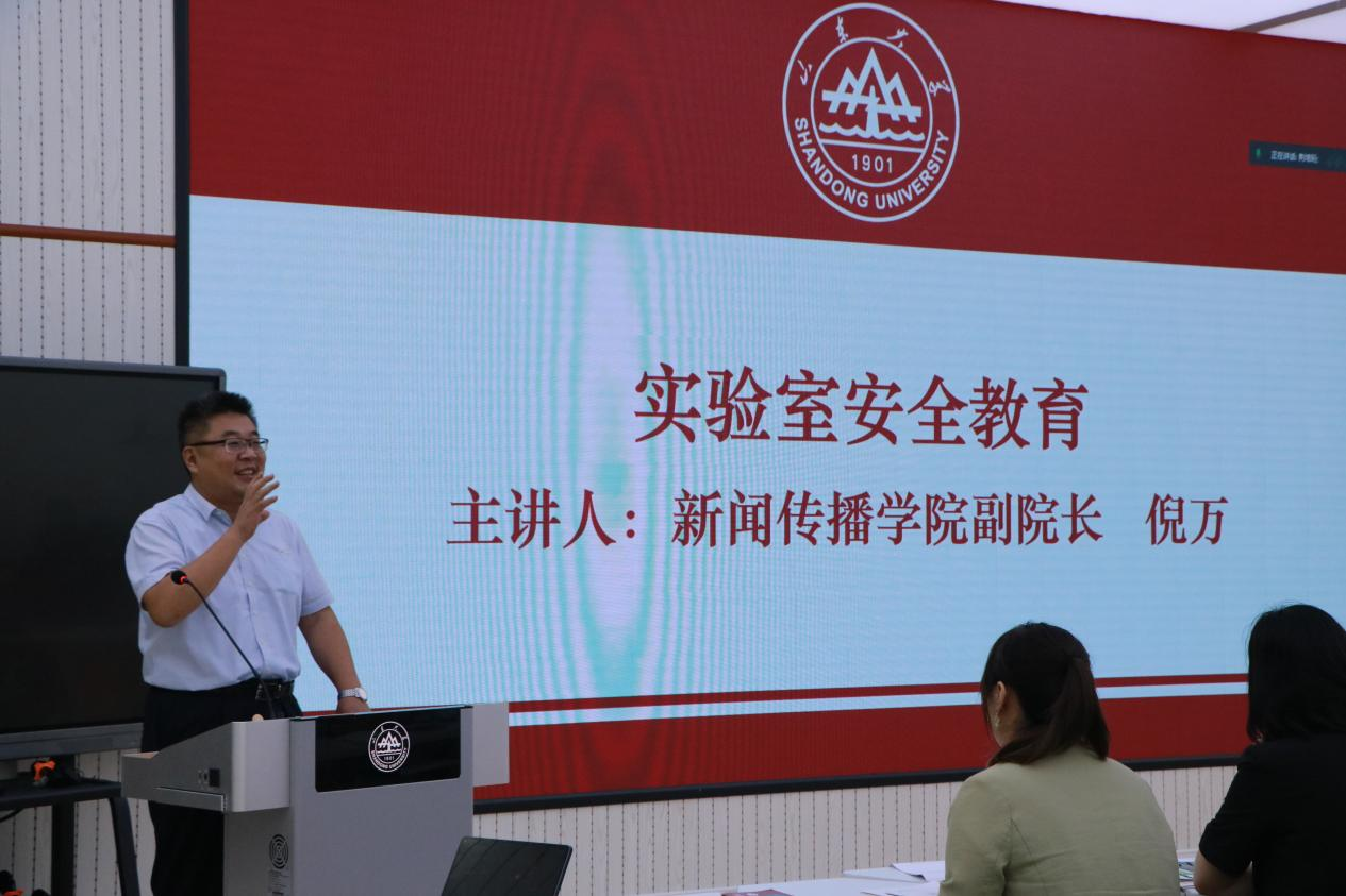学院副院长倪万以“学术生活在这里继续”为主题,详细地向同学们介绍了学院发展历史、学科排名、师资力量、学生培养方案、媒介科学与工程创新实践中心等情况。随后,他给新生做了实验室安全教育培训。最后,倪万副院长寄语新生:“恰逢成长时,青春读书处,希望同学们能在山大拥有一段美好的青春求学生涯”。