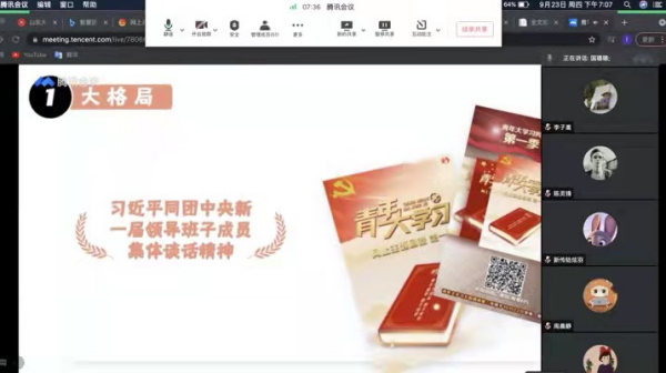 为响应共青团中央的号召,部署全团开展“青年大学习”行动,推动习近平新时代中国特色社会主义思想在青年中入脑入心,使广大团员青年真正认识到理论武装和思想进步的现实意义,更加自觉地参与到青年大学习当中,展现新时代青年的青春风采,2021年9月23日,det365登录网站主页2021级全体新生、团委组织委员、团支部书记、青年大学习工作联络员等参与了由det365登录网站主页校团委组织开展的 “青年大学习”主题团课。