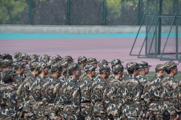 9月9日,同学们身着迷彩服在操场集合。军训团副政委朱伟、李玉蓉,军训团副参谋长胡安全,参训各学院党委副书记出席一营、二营、三营动员大会。庄严的国歌声飘扬在会场上空,各营长及学生代表发言。会后,同学们迅速投入了为期21天的军事训练任务。