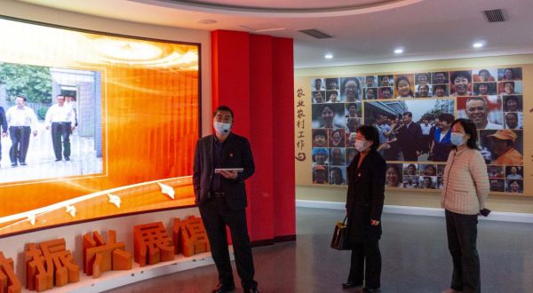 工作互动,资源共享,优势互补是党委共建工作开展的首要动机,三涧溪村党委就率先分享了在乡村振兴工作中的党建经验。村主任叶贵芬带领同学们进入党群服务中心,重走习近平总书记视察路线,引领全体师生观看宣传片,聆听工作报告。宣传片中呈现出“支部建在产业链上”的新型党建理念,生动展示了三涧溪村传统农业转型,产业融合发展,公共服务完善,现代化,科技化,数字化生活方式转变后的新样貌,展现出在党的精神熏陶下,三涧溪村基层党委领导组织的活力和实力,以及三涧溪村发展建设的生命力、创造力和创新力。诚如叶贵芬所言,“治穷治乱的关键点,是持续的党建活动。正是党员的引领,以党建为先锋,才能够提升凝聚力,向心力和践行力,为实现乡村振兴夯实物质基础。”