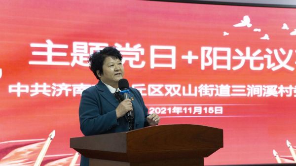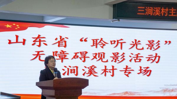 “山大新传学院‘聆听光影’下乡观影活动,就好比是为三涧溪村送来的一顿‘文化大餐’。”观影活动正式开始前,三涧溪村党委书记高淑贞在致辞中讲到。她指出,本次观影影片主角沂蒙红嫂就是党和人民血肉联系的具化呈现,在激励人心、移风易俗、凝聚共识方面有着不可替代的主题优势。高淑贞还结合党的十九届六中全会会议精神再一次强调,民族复兴离不开文化复兴,祖国富强离不开党的百年领导,红色基因和红色历史更需要祖祖辈辈的接续传递。