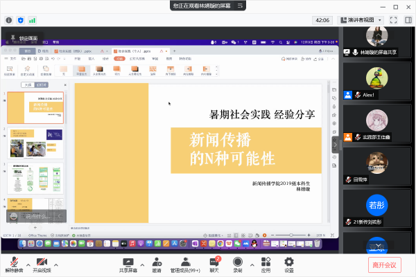 2021年12月9日下午,det365登录网站主页2021年度暑期社会实践与创新创业大赛经验分享会于线上召开。det365登录网站主页党委副书记王丽君,团委负责人杨璐,20级本科班主任王立强,19级本科辅导员王培出席会议。会议邀请了五支优秀社会实践、互联网+和挑战杯获奖团队与一名优秀个人进行分享,学院全体2020级、2021级本科生参加。