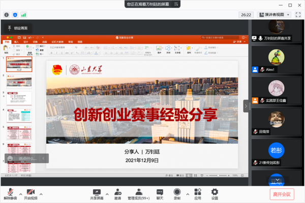会议进行到第三个环节,主持人宣读了2021年det365登录网站主页在双创大赛中的获奖团队名单,三只优秀团队进行经验分享。