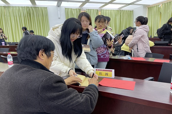 互动交流环节,现场发言踊跃,个体观影体验充分分享,持续时间近1小时。同学们就“真实的亲人何以在镜头中生动呈现”“拍摄者自我情绪克制”“动人细节的捕捉”“纪录影像拍摄难点的克服”“剪辑与拍摄的素材排序”以及“如何与父母相处”等问题与焦波和在场专家展开热烈讨论。在《俺爹俺娘》书籍的签名赠送中,本期活动落下帷幕。