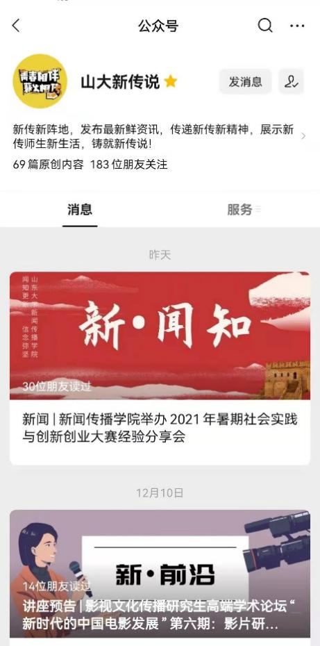 家长通过关注“山大新传说”以及学生所在年级的公众号,可以了解到学生思想动态、学业发展、文体活动等多方面的情况。