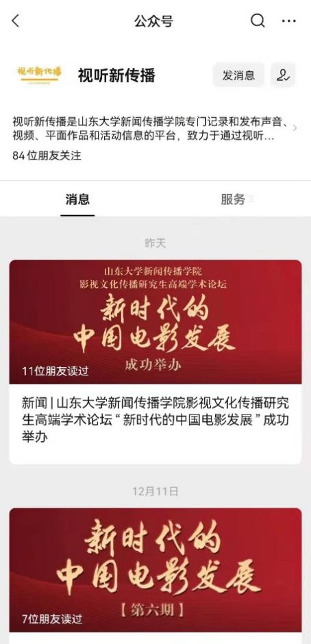 det365登录网站主页每个年级均设立微信公众号,班主任、辅导员指导选题、审核发布内容,公众号记录了学生们学习生活成长中的点滴,同时也是他们专业锻炼的平台。目前学院设立了“山大新传说”“视听新传播”、“SDU新知灼见”、“新意贰零”、“闲语维新”等微信公众号,以文字、视频的方式实时更新学生在校学习成长动态。