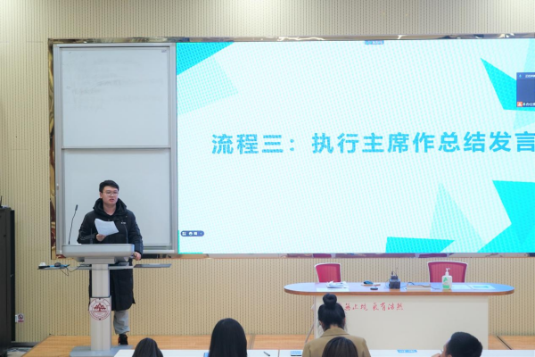 院研会执行主席许瑞坤总结发言,他说面对2021年工作中的新情况、新问题,研会工作平稳中有收获、创新中有突破,在新的组织架构下各部门通力合作,有条不紊地完成了各项工作。未来,他期待研究生会全体成员积极响应学校和学院号召,继续服务好师生同学,在各种活动中做好自己的本职工作,为学院的健康发展贡献研究生群体的青春力量。