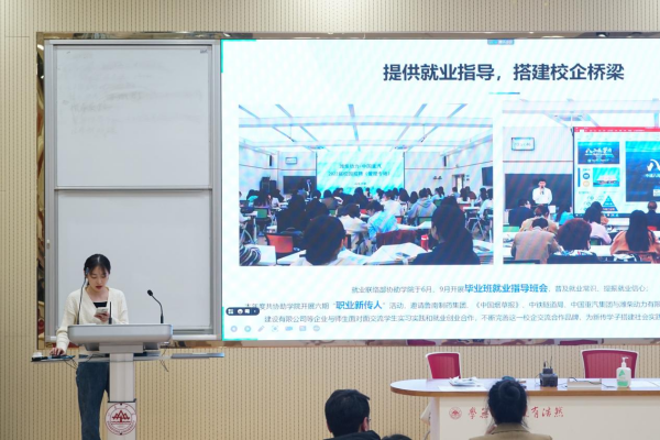 就业联络部负责人孙艺,总结了就业联络部的工作职责和重点。就业联络部要在内外通联、就业活动开展、就业数据统计与跟踪、就业派遣与调研等方面发挥好服务作用。在校庆活动中,部门积极筹建“薪火相传”优秀校友名录,并完成“det365登录网站主页校友墙”制作工作。部门将进一步创新发展工作机制,努力为新传学子搭建社会实践与实习就业的广阔平台。
