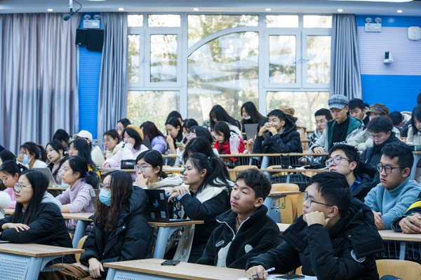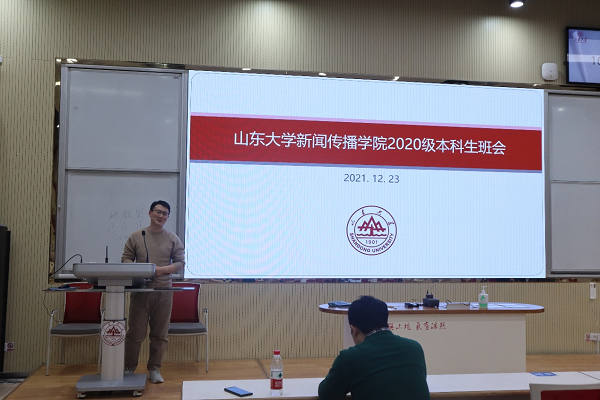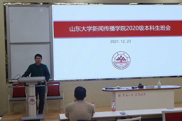 12月23日2020级全体本科生在电教北楼102教室召开期末班会。党委副书记王丽君、班主任王立强、冯强和辅导员宋石猛参加会议。王丽君对本学期的有关事项进行了总结。她对同学们学习生活中的可取之处提出表扬,并且再次提醒大家做好疫情防控,严格遵守学校的各项纪律要求,调整好心态,从容应对期末考试。王立强、冯强和宋石猛就期末考试注意事项、校园疫情防控要求、出入校报备审批、假期安排等事项提出了明确要求。大家一起观看了山东省高校巡演舞台剧《花儿与少年》。该剧讲述了一对在校大学生情侣因意外怀孕而引发的一系列纠葛,旨在引导青年人正确认识艾滋病,建立正确健康的两性观并科学应对意外的发生,“捍卫”生殖健康。