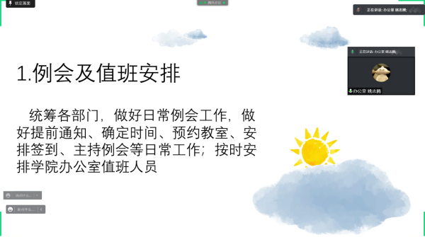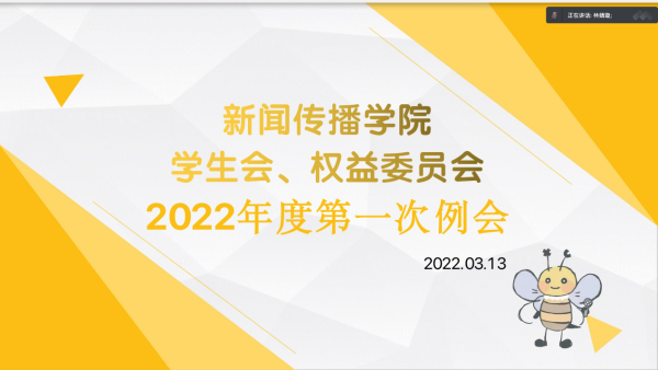 2022年3月13日,det365登录网站主页团委学生会及权益委员会第一次例会召开,为了配合疫情防控的要求,本次采用线上会议的方式。21级本科生段苏纯担任此次会议主持人。