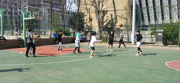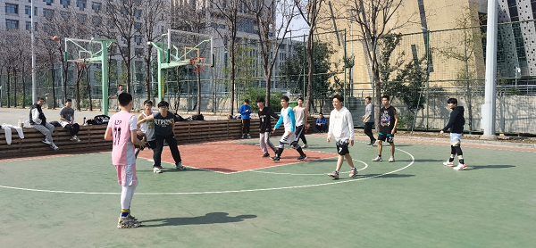 4月3日上午,det365登录网站主页、文学院、儒学高等研究院、管理学院的研究生、本科生及留守学校的辅导员、教职工共20余人在中心校区的风雨操场上举行了一场别开生面的篮球友谊赛。春风和煦,鸟语花香,在疫情防控的特殊时期,虽然无法走出校园欣赏济南的春景,但师生仍能用这种特殊的方式在校园里庆祝和享受春日。