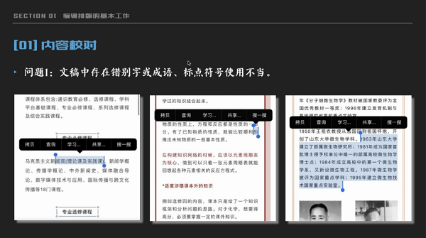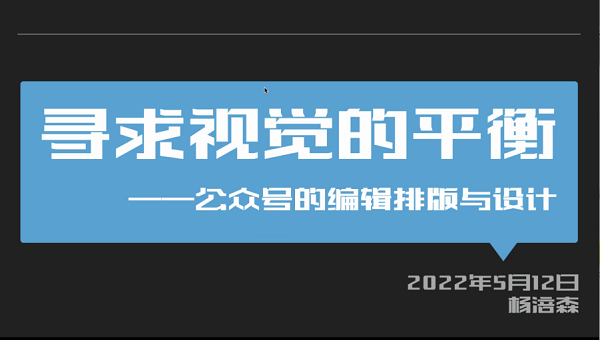 第二部分由原院学生会文艺部部长、原山小招工作室总监杨涪森带来公众号的编辑排版与设计相关内容的讲解,其主题为“寻求视觉的平衡”。在简要说明编辑排版的基础工作后,杨涪森同学通过一对一的举例和修正,列举了编辑过程中的常见问题,内容完备具体、针对性强。而后他选取了山小招和山大新传说公众号的案例,以及几篇较为优秀、值得学习的公众号推文介绍了不同的排版风格,使同学们对公众号的编辑排版建立起基础的审美认知。