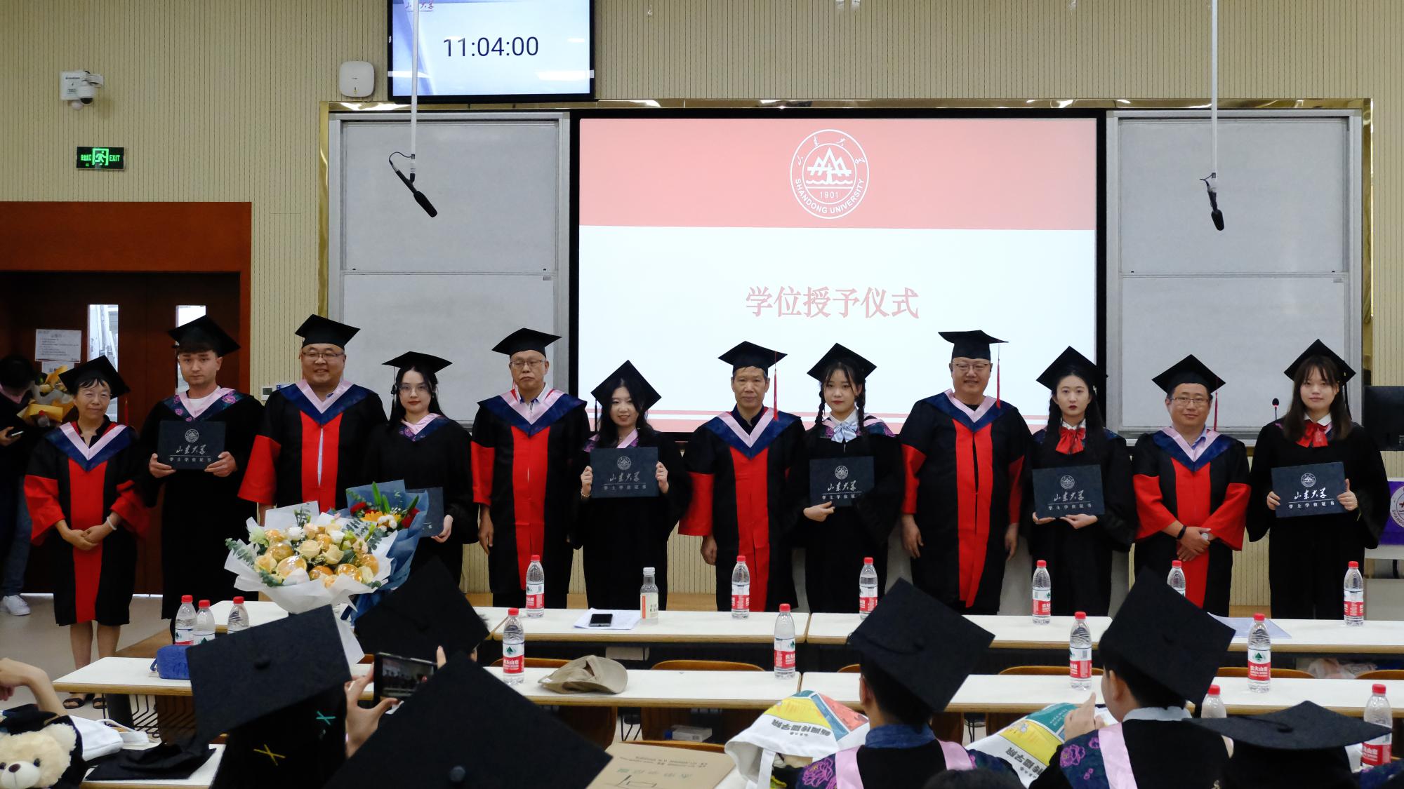 在庄严的奏唱国歌环节后,副院长倪万和副院长杨晓冬分别宣读本科生和研究生《表彰优秀毕业生决定》,公布山东省与det365登录网站主页优秀本科生毕业生名单。