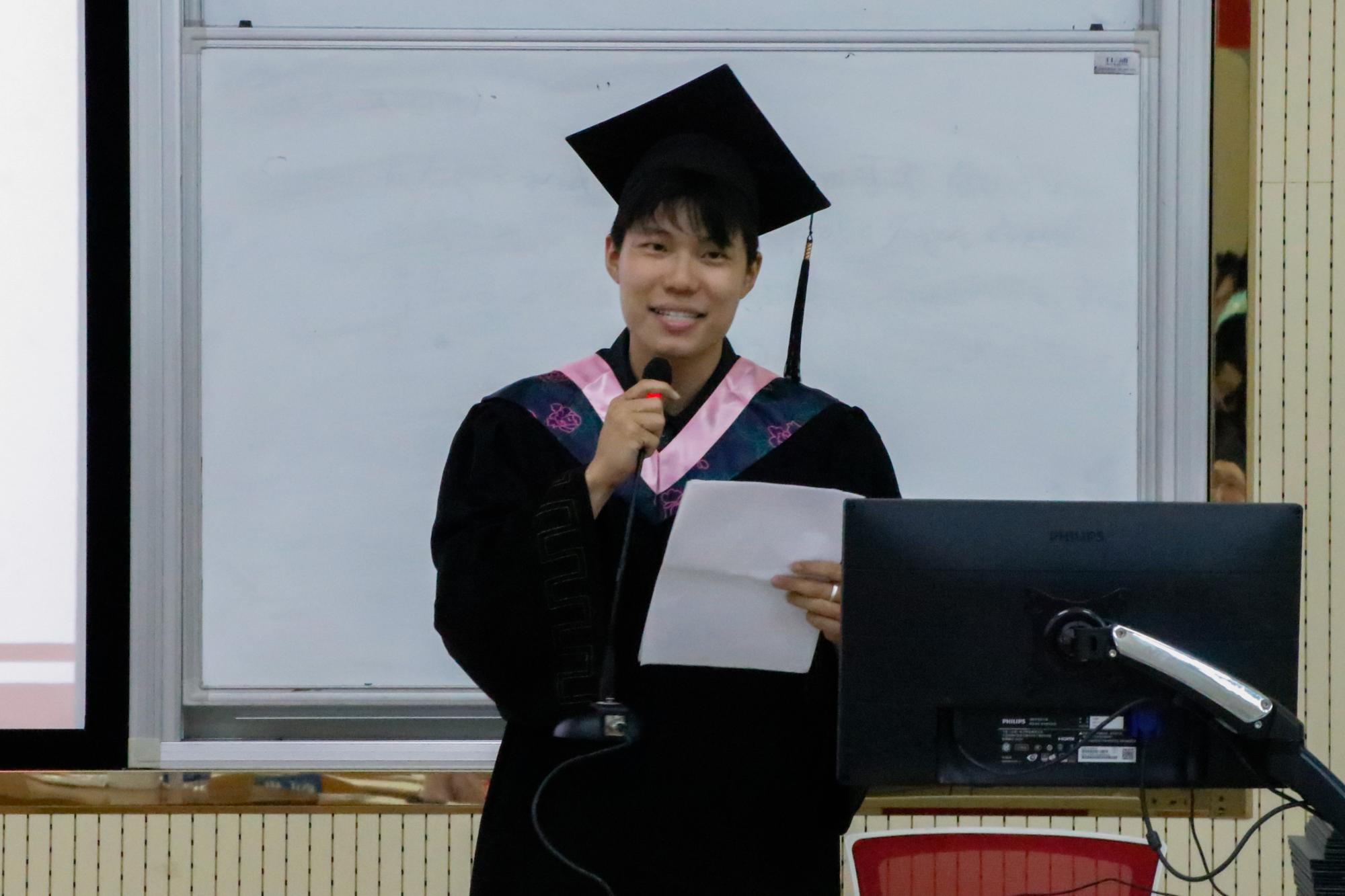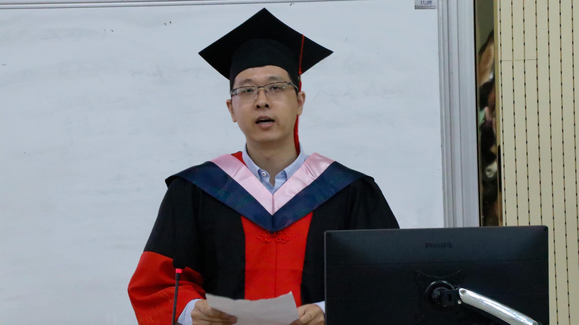 本科毕业生代表李云松引用“只有保持尊严才能赢,尊严总能让你站立”来勉励同学们树立起中国青年的形象,永远保持自尊,勇敢直面来自未来的挑战。研究生毕业生代表潘江涛代表所有同学们表达了对学校和学院三年悉心培育的感谢,并表示未来将会带着母校的光环、带着老师们的殷切嘱托和美好祝愿,做具有时代使命感和责任担当的高素质高标准人才。