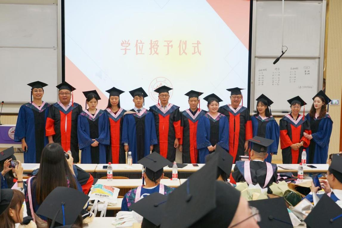 学位授予仪式上,新闻传传播学院学位评定分委员会主席刘明洋、副主席王德胜、唐锡光以及倪万、谢锡文、臧丽娜老师为毕业生拨穗并授予学位。