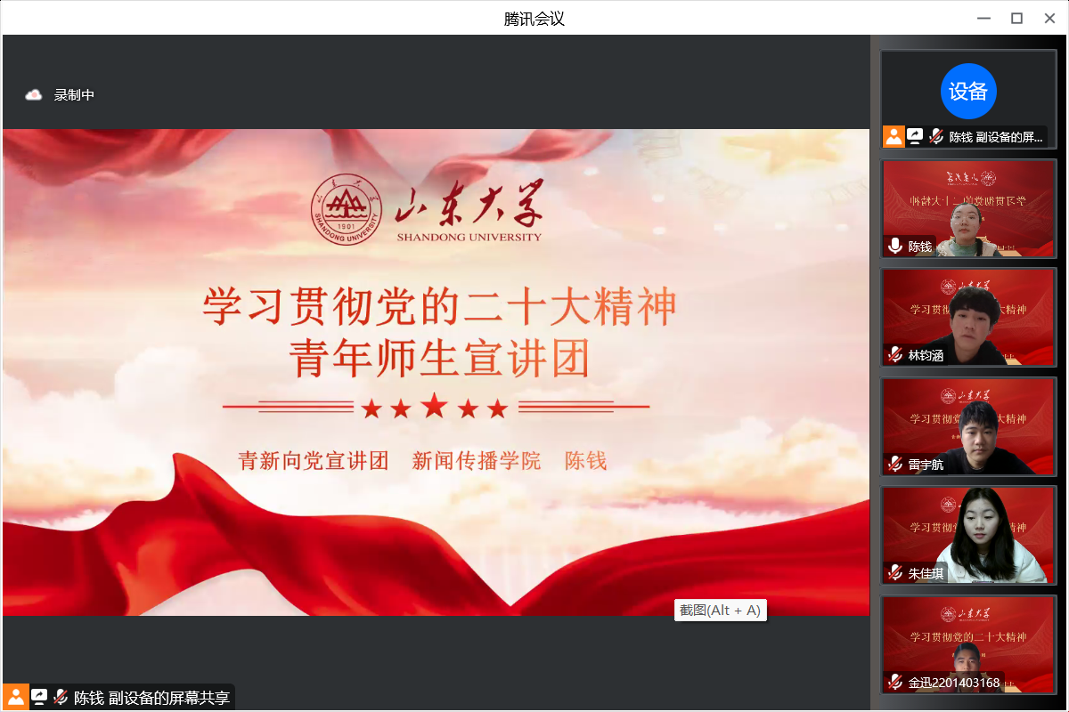 为深入学习宣传贯彻党的二十大精神,凝聚奋进新征程的青春力量,1月15日上午,det365登录网站主页“青新向党”学生宣讲团成员陈钱,通过腾讯会议的方式,面向浙江省武义第一中学的同学们进行了“促进世界和平与发展,推动构建人类命运共同体”主题宣讲。