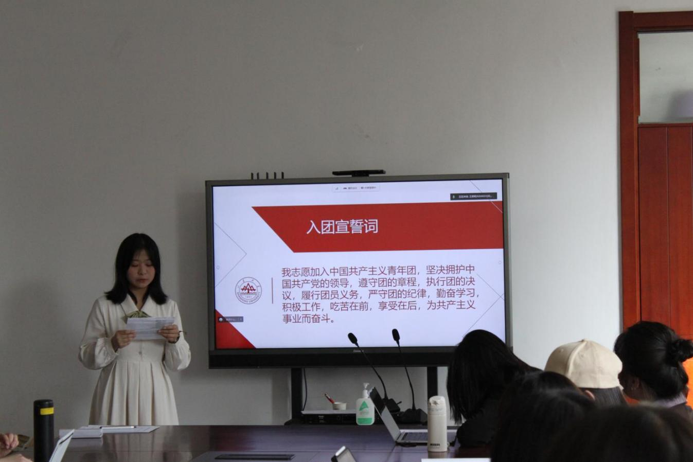 答辩会结束后,学院团委为2022年下半年发展的新团员2020级本科生吴卓林举行了入团仪式,吴卓林在线上进行入团宣誓。