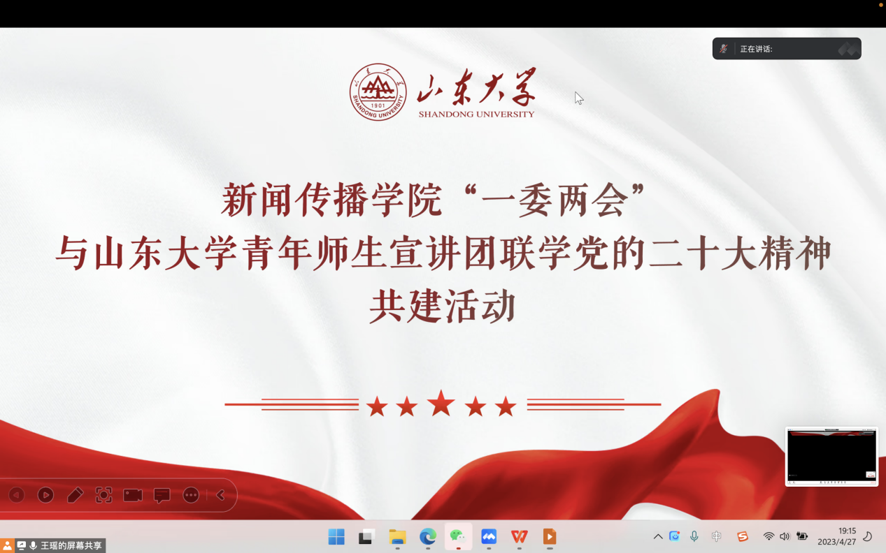 为深入学习党的二十大精神,深刻领会过去五年工作和新时代十年伟大变革的重大意义,充分发挥学生骨干的示范引领作用,引领广大青年坚定不移听党话、跟党走,det365登录网站主页“一委两会”学生骨干与det365登录网站主页党的二十大精神青年师生宣讲团于4月27日开展联学共建活动。会议由det365登录网站主页学生会执行主席王瑶主持。