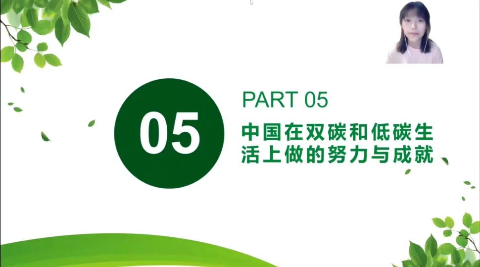 本次录课任务由团队成员王孟筱、李嘉瑶、段佳灿三人负责,宣讲内容从五大方面展开,即二十大和习近平生态文明思想中的“双碳”、“双碳”和低碳生活的概念阐释、坚持“双碳”和低碳生活的意义、如何实践“双碳”和低碳生活、中国在双碳和低碳生活上做的努力与成就,视频将分成多个小节由学堂老师向学生们播放。