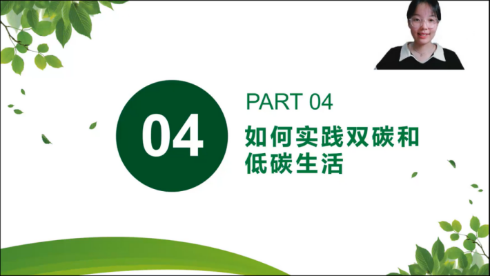 本次宣讲活动的内容从多主体多角度出发,对“双碳”和低碳生活的知识进行讲解,团队成员采用图片与视频相补充的形式,有效提升了宣讲内容的全面性和趣味性。在第一部分,团队成员们播放了生态环境部发布的2023年“全国低碳日”主题宣传片,引入主题;在第二部分阐释概念时插入了大量形象化的图片,便于学生们的深入理解;在第四部分,成员们从“衣”“食”“住”“行”“用”“学”六大方面出发,插入了多个生动有趣的视频,以尽可能贴近学生生活的宣讲方式,便于同学们深刻理解并应用“双碳”和低碳生活的知识。