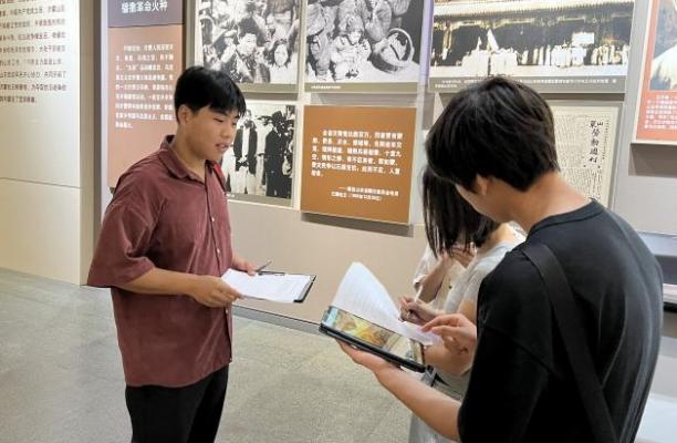 次日上午,团队成员来到沂蒙革命纪念馆,开展问卷调查工作。VR技术的快速发展,使其在各大场馆游览中得到较为普遍应用,沂蒙革命纪念馆也推出了VR小程序辅助游览功能。在表明我们的调研目的后,调研对象细致体验了沂蒙革命纪念馆的VR全景游览功能,并填写了关于“沂蒙革命纪念馆VR游览”体验效果的调查问卷。调研对象从教师、公务员到个体商户、工人、学生等等,覆盖多个群体,年龄从16到60岁不等,所收集问卷质量较高。
