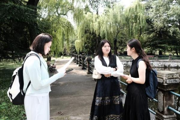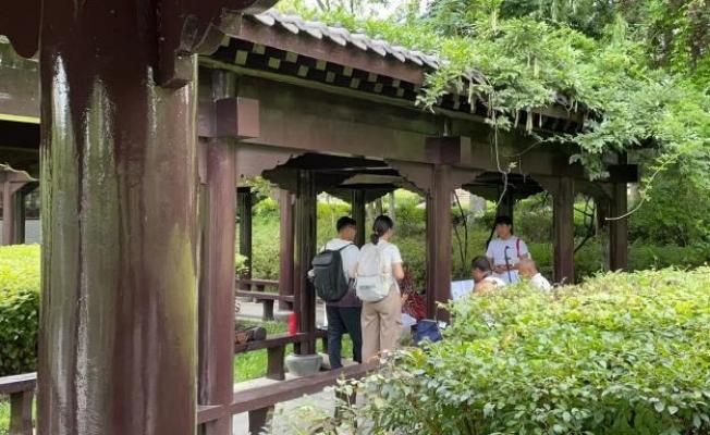 21日上午,团队成员首先来到华东革命烈士陵园进行参观学习,重温红色记忆,缅怀革命先烈。刚下过雨的陵园炎热不减,在落花的点缀下更添一分肃穆。接着,成员两两一组,分头展开随机访谈。尽管天气炎热,大部分园内游客仍然耐心地配合我们完成了访谈,为我们的调查研究提供了宝贵的样本。