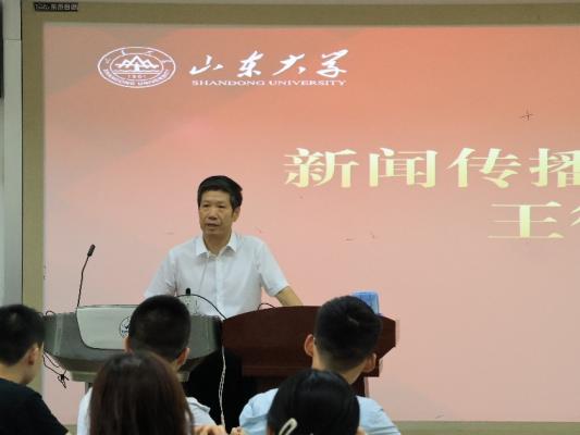 最后,刘明洋院长做出总结致辞并讲授开学第一课。他阐述了自己对新闻的理解,围绕“变革的新闻与我们的变革”这一主题,引出了“大新闻观”,讲述了变革的原因及变革所带来的变化,详细阐述了传统新闻与现代新闻的差异,解释了大新闻的概念与趋势,提出“变革的时代需要新闻的力量”这一观点。他指出,当今时代下,每个人都应当具备新闻素养,用判断定位方向,“做好自己的变革”。他说,新闻具有情怀,希望新生能够投身多元实践,提升自身能力,也祝愿新生快乐地生活、学习、实践,努力让新闻迸发魅力,在新闻的天地里大展宏图。