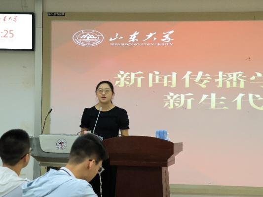 然后,新生班主任姜楠老师对新生提出了三点建议,一是敢于面对并享受困难与挑战,通过积极应对并战胜困难与挑战找准自身定位、获得成长。二是广泛交友,但是也要保持谨慎的态度。三是增强思想意识,提升思维能力。她希望新生能拥抱理想、看向生活、付诸实践,成为有底气、有担当的山大新传人。