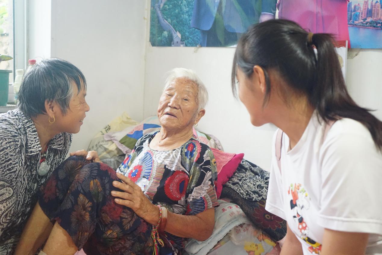 团队首先来到乳娘陈淑明的家中,对其进行慰问和采访。这位96岁的老人是三百多名中哺育八路军后代的乳娘之一,也是唯一一位在世的乳娘。她曾两次给亲生儿女断奶只为更好地抚养乳儿。2021年,陈淑明获全国第八届道德模范提名奖。团队亲切地问候了乳娘陈淑明的身体状况和生活条件,并对老人以及老人的亲属进行采访。在历经半个多世纪风雨的老房子中,团队了解到最真实的抗日战争年代乳娘与乳儿的故事,感受到那个动乱迭起的时代生活条件的艰难和乳娘们无私奉献、舍我其谁的精神品质。此外,“乳儿大于天”更是体现了乳娘们一心向党的决心和诚实守信、忠于祖国的意志。而从乳娘陈淑明女儿的口中,我们也了解到老人的健康情况,了解到乳山市政府对老人的关心和照顾。
