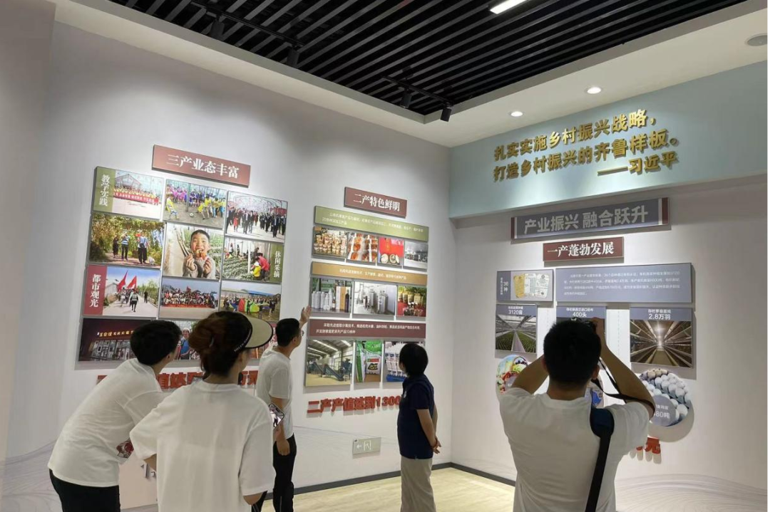7月11日下午,团队首先到达洼里村星创天地展馆参观展览,在工作人员的带领下,调研团从艰苦创业、锐意改革、科技创新、产业振兴、迈向未来5个篇章全面了解了洼里村蝶变历程,实地感受国家实施“脱贫攻坚”“乡村振兴”战略对农业农村带来的巨大变化和显著成就。
