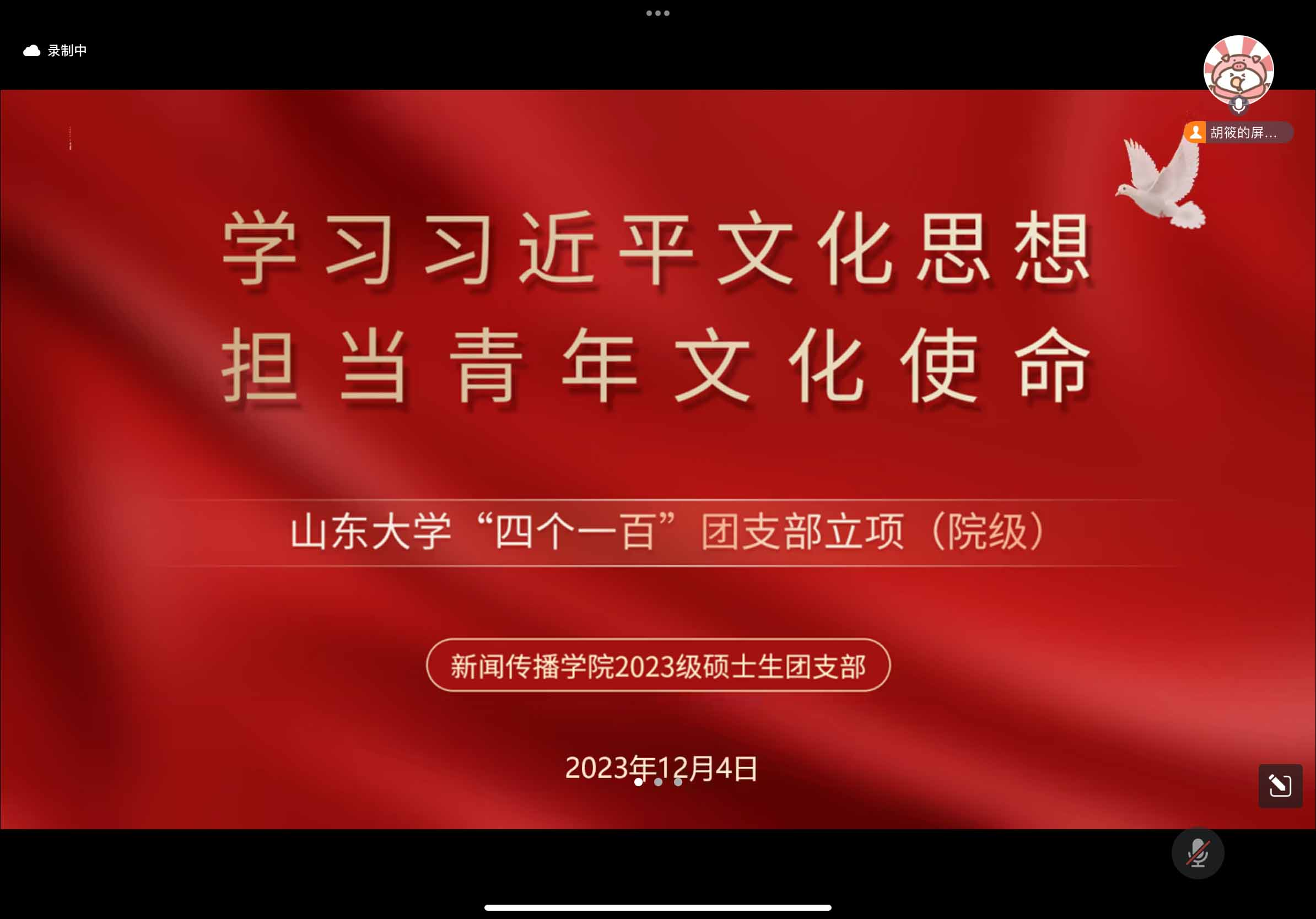 第一次主题教育于12月4日开展,为积极响应《det365登录网站主页关于开展“四个一百”团支部立项工程的通知》号召,2023级硕士生团支部于该日举办了主题为“学习习近平文化思想,担当青年文化使命”的活动。