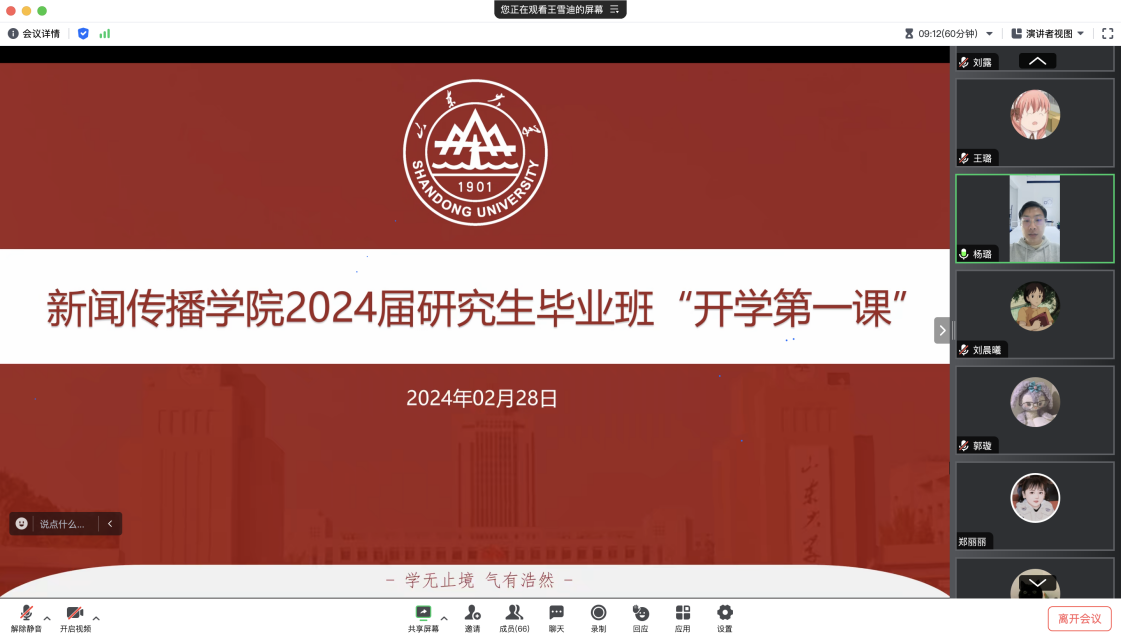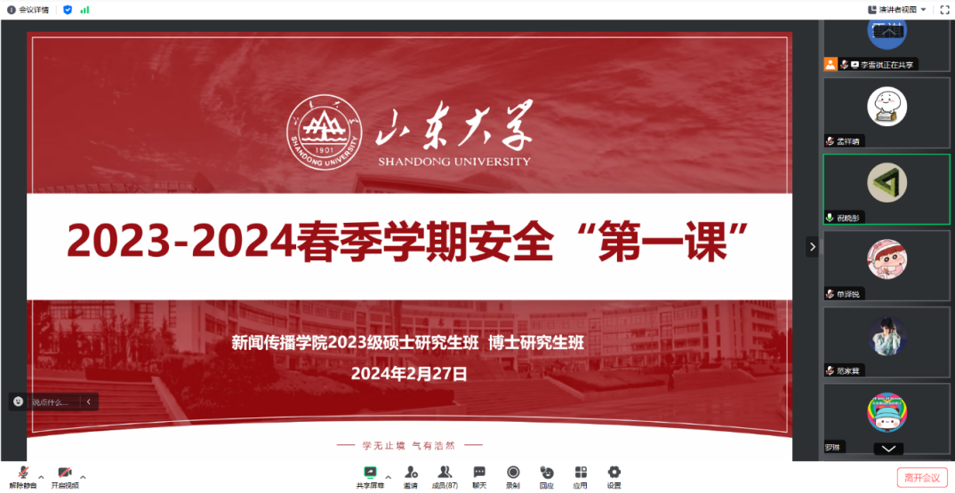 2月28日下午,2024届研究生毕业班开展开学安全“第一课”,学院党委书记孙宜山、党委副书记王丽君、辅导员杨璐参加会议,为学生进行安全教育和指导,传达了各级党委政府对当前学校安全工作的重要安排部署。他们指出,学校安全工作事关广大师生的生命财产安全,事关社会的和谐稳定,必须高度重视,切实加强。