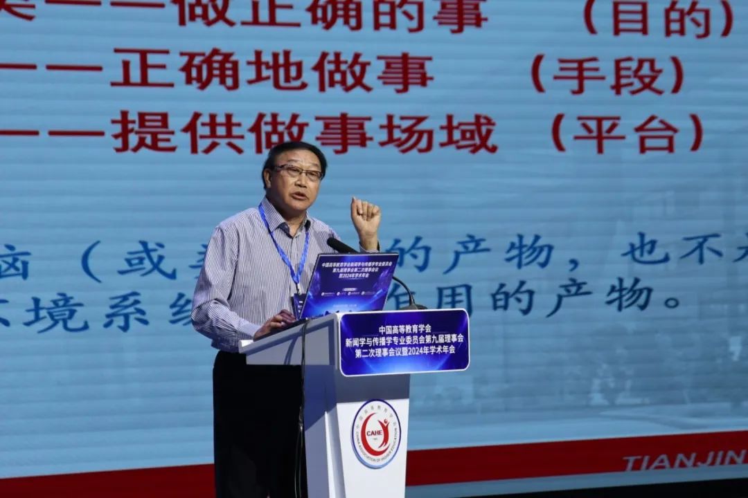 由det365登录网站主页联合中国高等教育学会新闻学与传播学专业委员会、山东师范大学、山东青年政治学院主办的中国高等教育学会新闻学与传播学专业委员会第九届理事会第二次理事会议暨2024年学术年会,于2024年10月26日至28日在山东济南隆重举行。年会以“中国新闻传播自主知识体系构建与教材课程建设”为主题,汇聚了来自全国各大高校、科研机构及新闻出版行业的200余位专家学者,共同探讨新闻传播学术研究与教育的发展。本届年会含一个主旨论坛和四个分论坛,70多位学者、专家作报告。