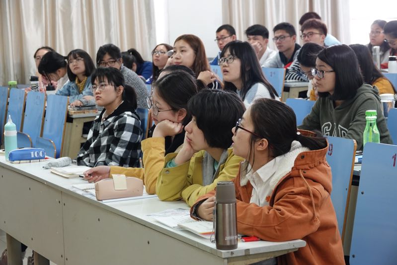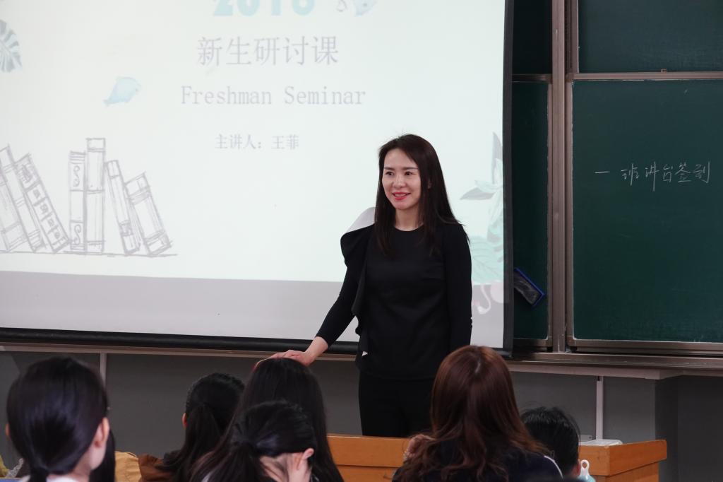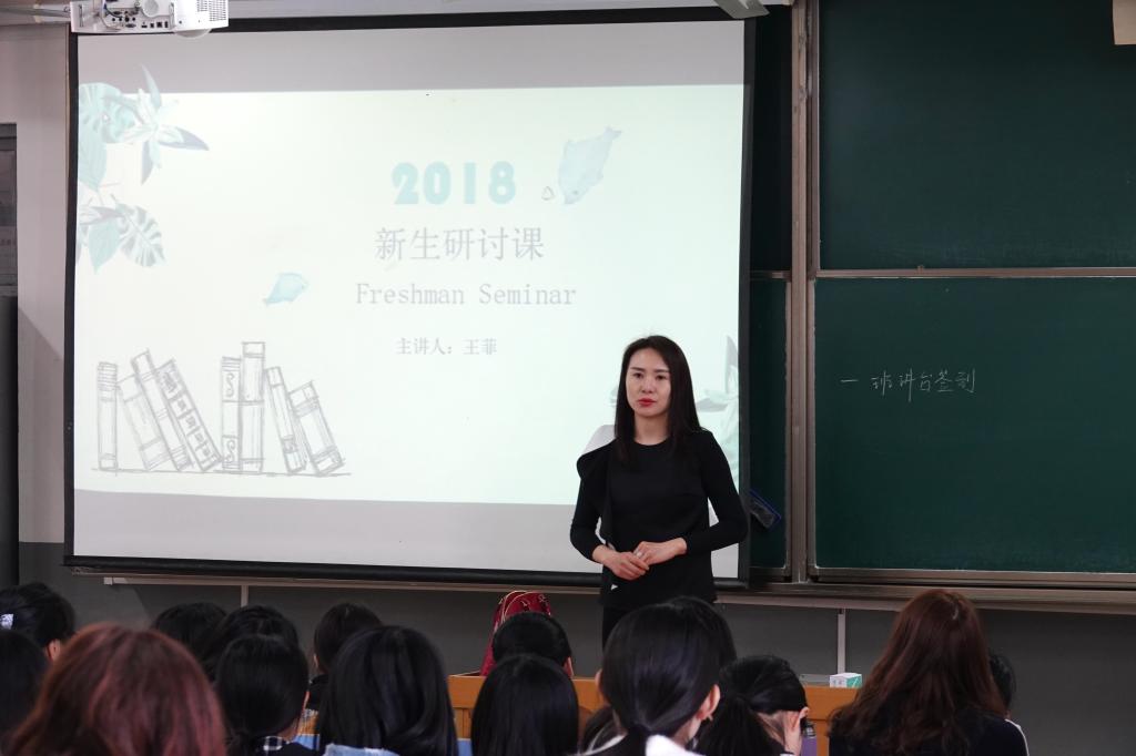 2018年3月13日,det365登录网站主页2017级全体学生在中心校区理综楼513参加本学期第二次新生研讨课。此次讲座诚邀山东广播电视台体育频道主持人王菲与同学们交流,为同学们讲述她在媒体从业十年的经验。讲座由17级班主任吴迪老师主持。