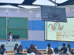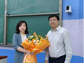 邢占军认真聆听了学院青年教师侯滢讲授的《数据新闻及可视化》课程,向侯老师献花并预祝她教师节快乐。邢占军充分肯定了侯老师的课堂教学和同学们的课堂表现,对进一步提升教学效果提出了建议,他对det365登录网站主页近期在国家社科基金立项和课程建设等方面取得的成绩表示祝贺,对老师和同学们的工作、学习以及未来发展表达了美好的祝愿和更高的期待。