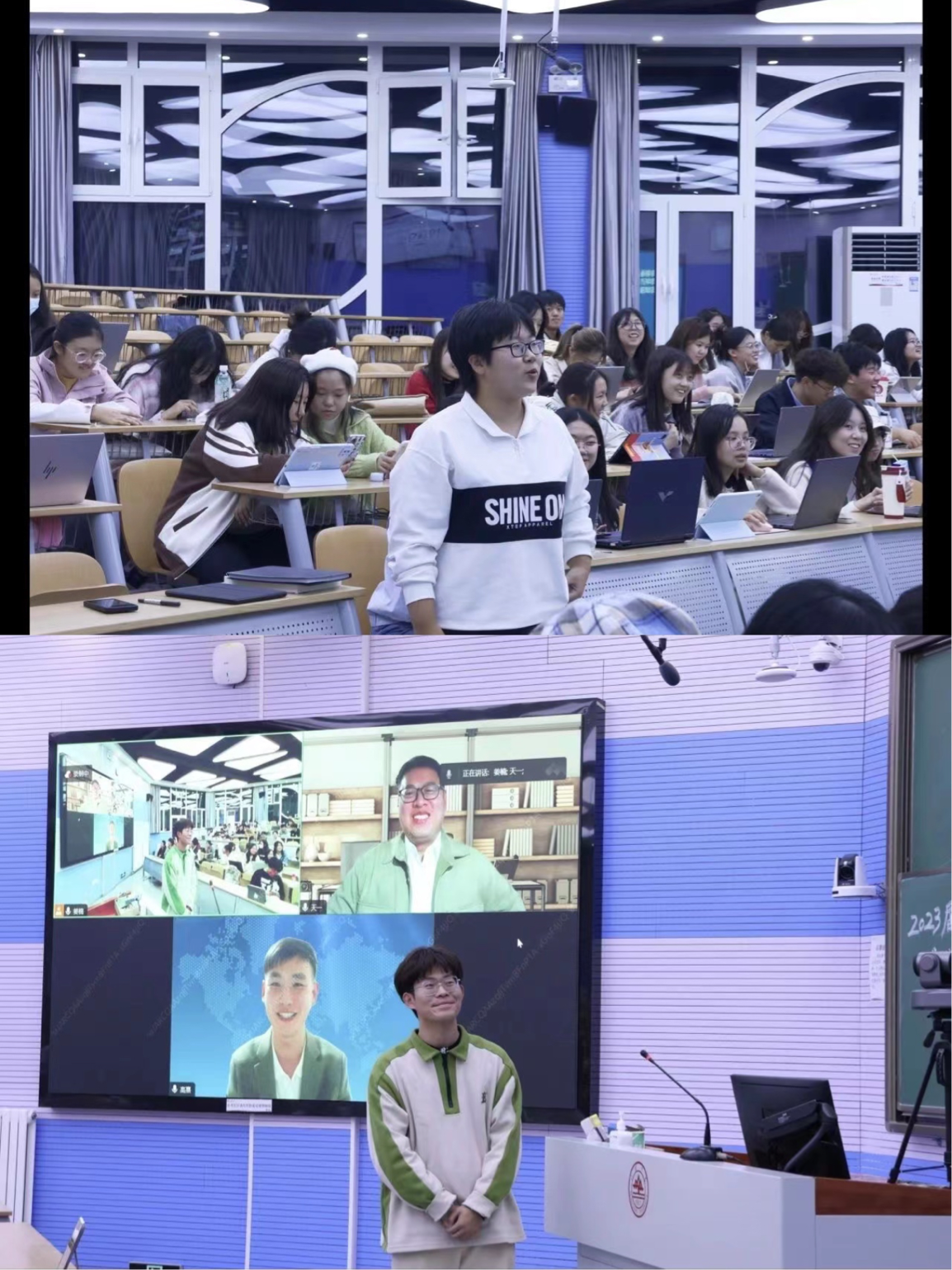 在本次课程中,邓天一老师以“传统媒体正在消失?”为话题展开讲解,立足媒体融合背景下中国影像传播的本土实践,围绕传统媒体的作用、现状以及受众等层面进行深入剖析,并对传统媒体的未来寄托希望;高熹老师以“国际媒体传播”为议题,聚焦媒体融合背景下中国影像传播的国际视野,对国际传播谁来讲故事、怎么讲故事、怎么开始你的国际传播故事等方面进行分析讲解,激发了同学们的在国际新闻传播领域的责任情怀。