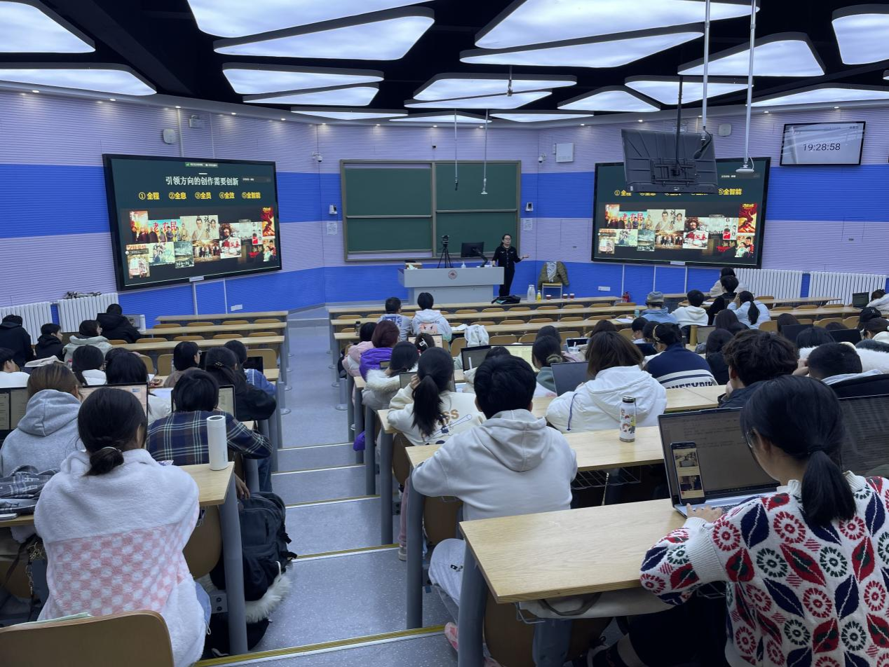 内容创新力和文化引领力是未来影视传播发展的大趋势。2023年中国电影总票房突破500亿大关,李老师以《满江红》《孤注一掷》《流浪地球Ⅱ》《消失的她》为例介绍了中国影视行业良好的发展前景。并且介绍了和西藏有关的电影《益西丹玛》《守望天湖》《绿皮书》和《回西藏》,以此阐述电影创作中的主旋律创新表达,表明虽然当今时代已经发展到跨屏、多屏时代,但历史是不可磨灭的,我们依然要向历史学习,向生活学习,向经典学习,进行海量的阅读。在对《沂蒙》 《无所畏惧》等影视作品进行分析时,李老师也鼓励对这方面有兴趣的同学们参与到未来行业实践中来。她表示未来中国到影视剧作会越来越与世界接轨。